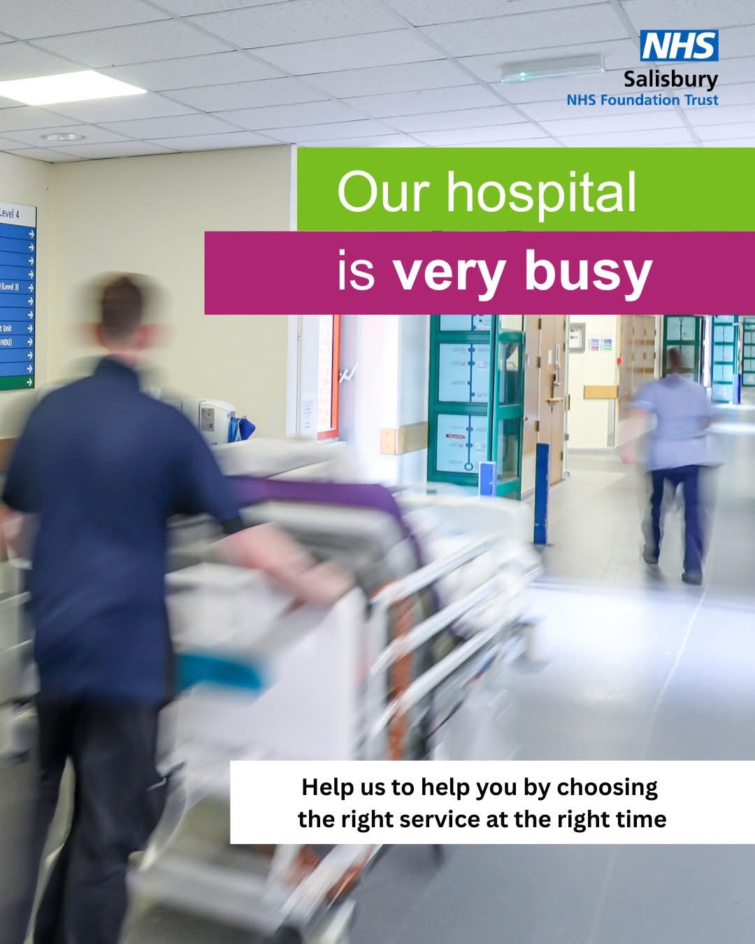 Our hospital continues to be very busy. We are experiencing extremely high demand. To help us care for those who need us most, we are asking that only patients with emergency or life-threatening conditions attend our Accident & Emergency Department. If your condition is not urgent, please consider an alternative healthcare service, such as your GP, local pharmacy, the Minor Injuries Unit in Andover, NHS111, and out of hours, Salisbury Walk In Centre.